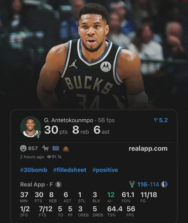 此役字母哥爆砍30分8板6助3帽全面数据,带领雄鹿116-114险胜独行侠,对面的状元郎弗拉格26分9板4助2断1帽。