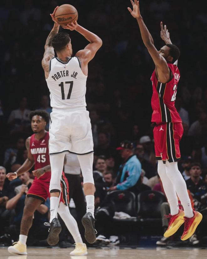 此役篮网前锋小迈克尔-波特25投10中,得到30分13篮板1助攻2抢断1盖帽。本赛季至今,小波特为篮网打了51场比赛,场均出战32.7分钟,得到24.3分7.2篮板3.1助攻1.1抢断2.3失误,三项命中率:46.3%,36.5%,85.7%。
